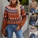 Retro Style Long Sleeve Round Neck Printed Loose Sweater