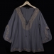 Retro Style Long Sleeve V-neck Embroidered Spliced Loose Top