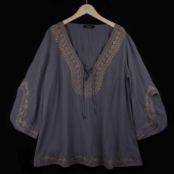 Like retro style piece? Then you can have a look at this wonderful top. Its soft fabric and loose silhouette design can ensure you a comfortable day,while the v-neck and embroidered spliced details will make this piece look more attractive. You can update your daily style with this piece.