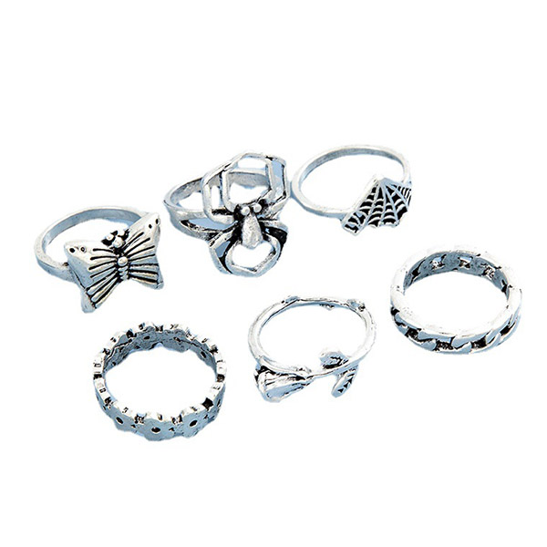 Retro Style Silver-tone Butterfly Flower Ring Set 6 pcs/Set