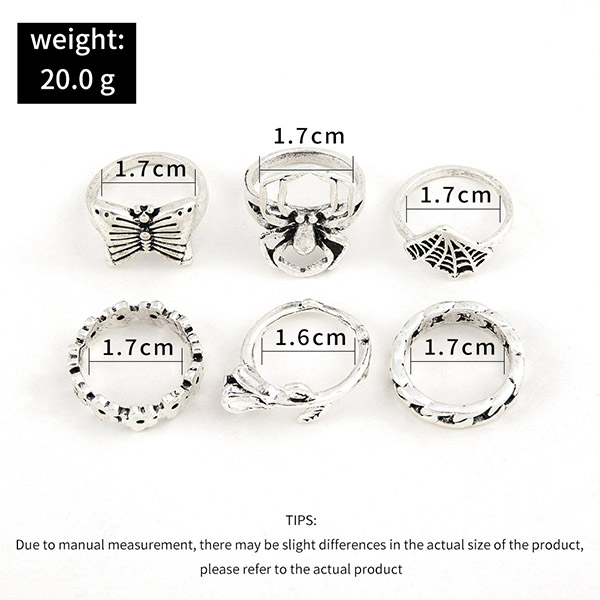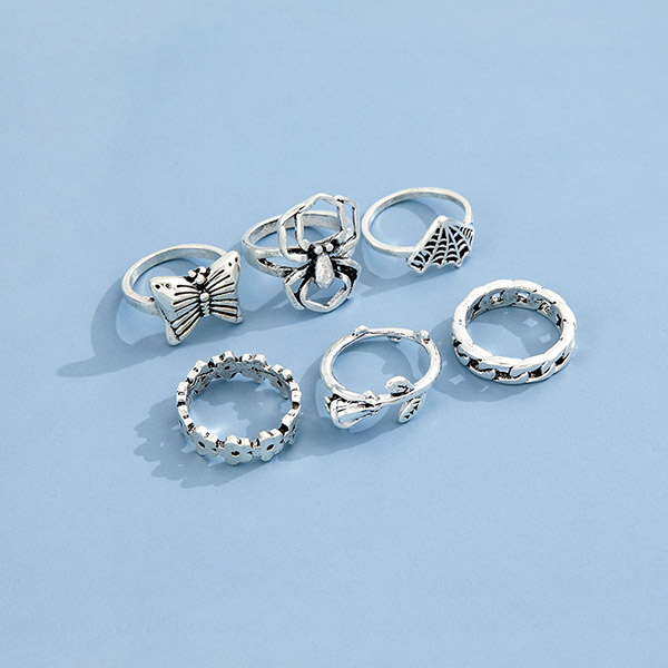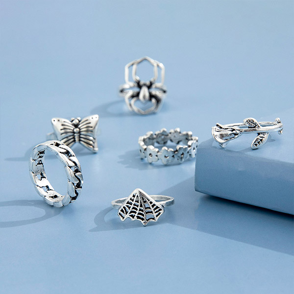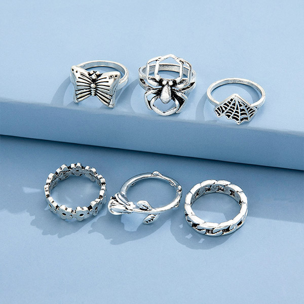 Wanna embellish your fingers? Then you can just have a try this ring set. Comes with a classic yet stylish silver tone,including 6 pieces different rings such as butterfly shape,flower shape and so on,this ring set also can add some endless charm to your overall look. So why not add them to your accessory box?