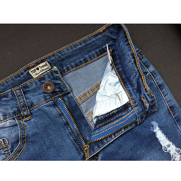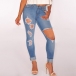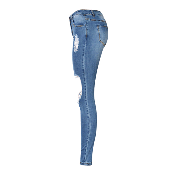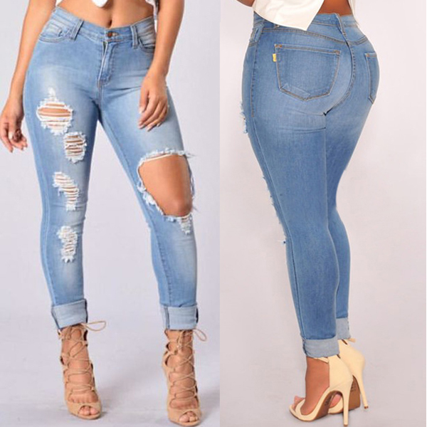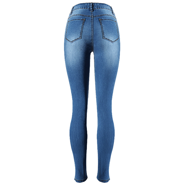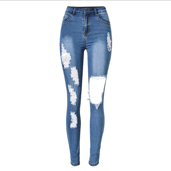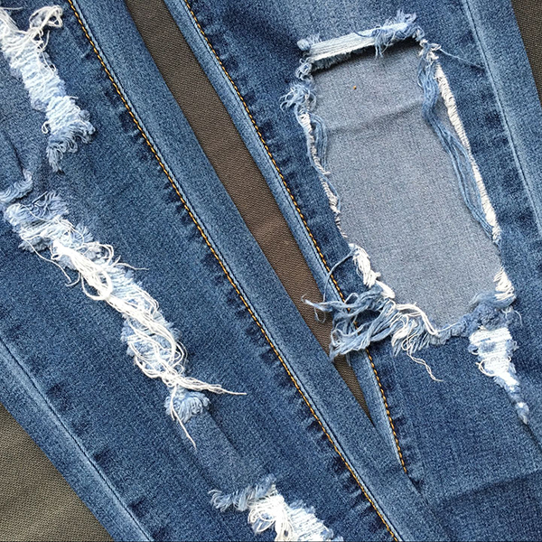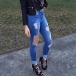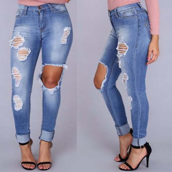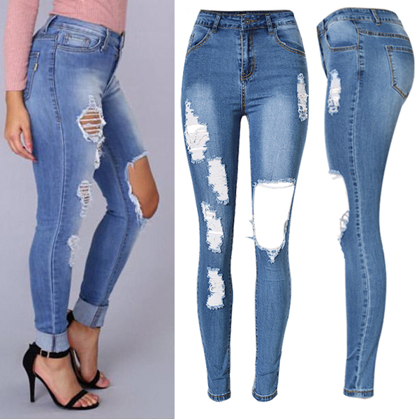 Högmidjade stretchjeans i slim fit med slitna detaljer