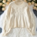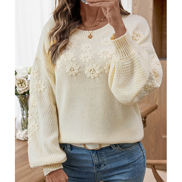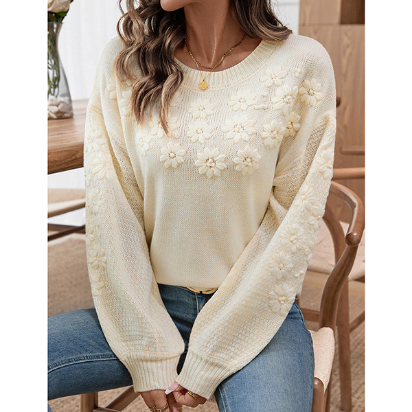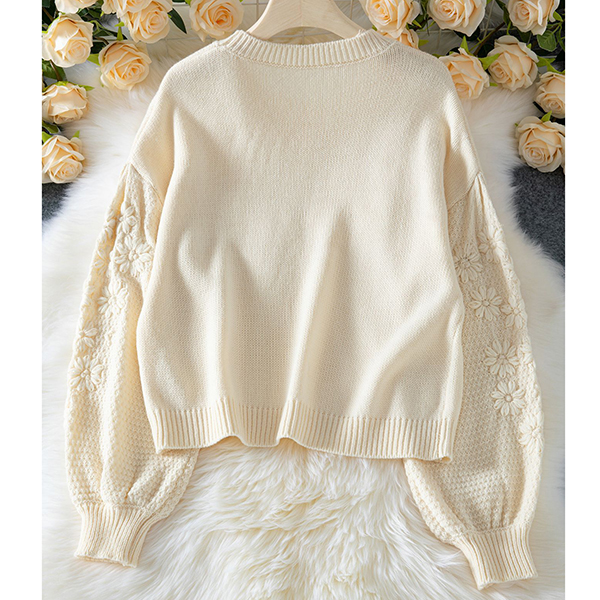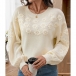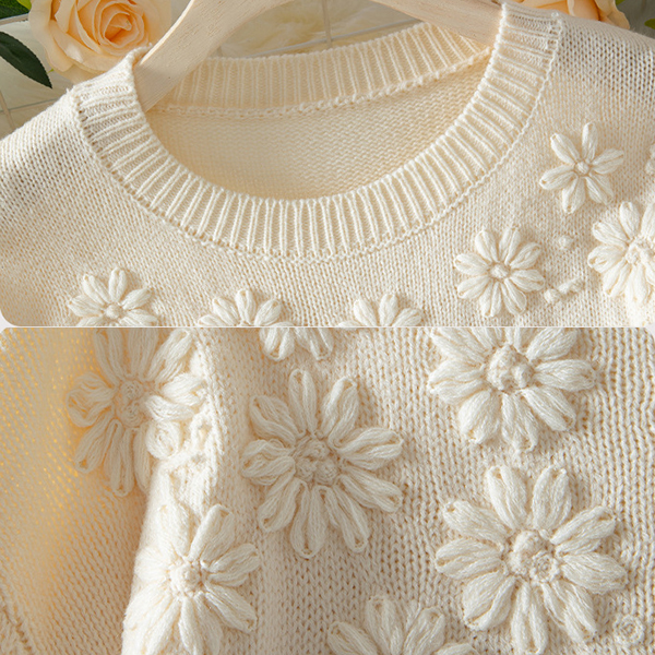Stickad tröja i lös passform med rund hals och 3D-broderad prästkrage