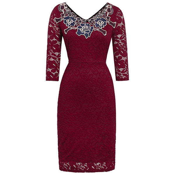 Exhibit your incredible style sense with this beautiful lace dress. The backless design can make you look sexier. Finished with 3/4 sleeve and a fit silhouette design,this dress can portray your slender figure. For your fancy events like dinner dates or weekend gatherings,you can trust in this dress to make you look stunning!
