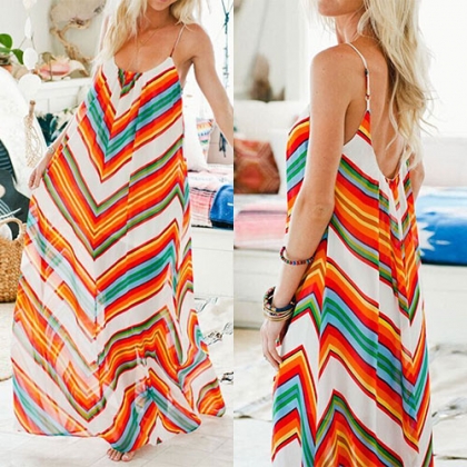 Sling style,with backless design adding some sexy flavor. And its colorful striped design makes