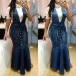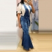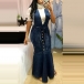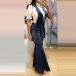 Sexy Backless Deep V-neck High Waist Fishtail Hem Denim Suspender Skirt