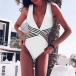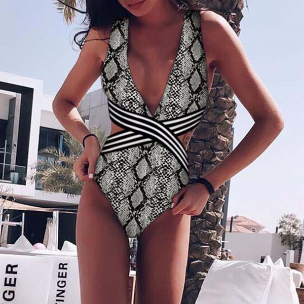 Sexy Backless Deep V-neck Printed One-piece Swimsuit