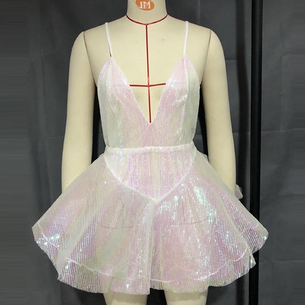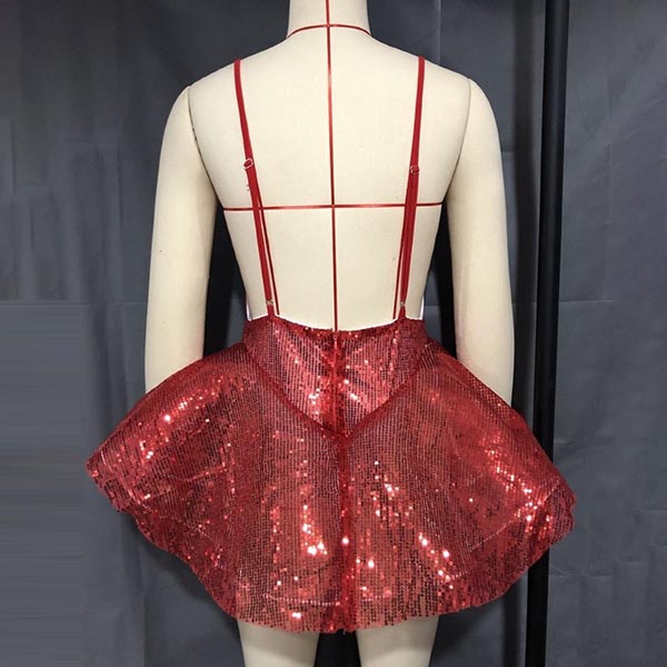Sexy Backless Deep V-neck Sequin Sling Dress