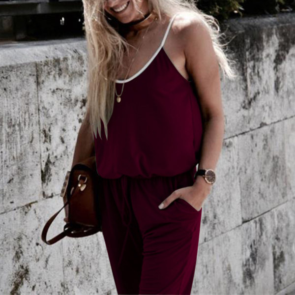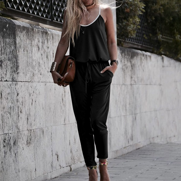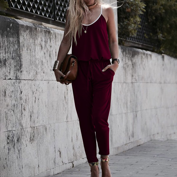 In these sun-soaked summer days,this jumpsuit is a good choice for you. Sling and backless design can make you look sexy and flirty,while the drawstring waist and clean silhouette design can better highlight your slender figure. So if you wanna update your style,you can just slip into this jumpsuit!