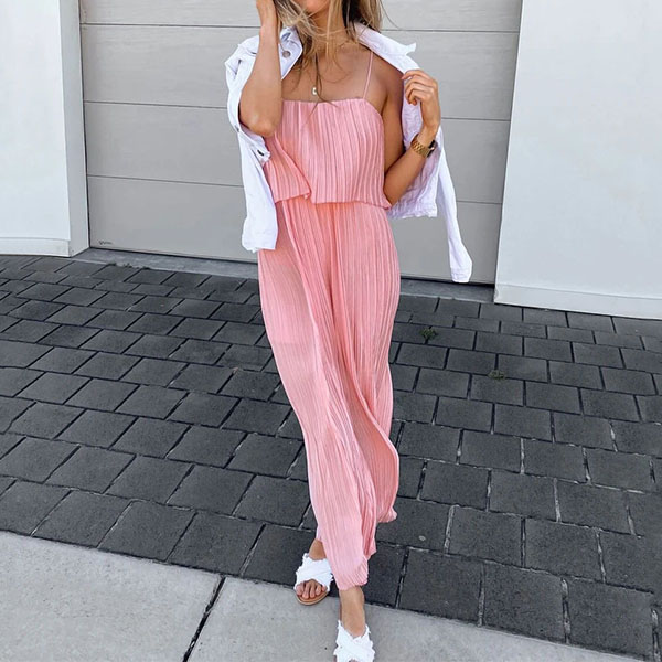 For a stylish and charming trip look,you can just slip into this jumpsuit. Comes with a sweet pink tone,the backless and sling design can make you look sexy and flirty. You can add a sunscreen cardigan in these sun-soaked days.