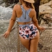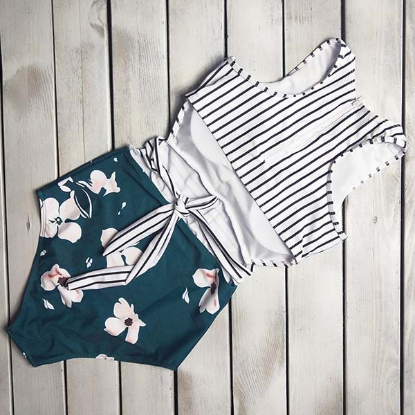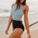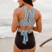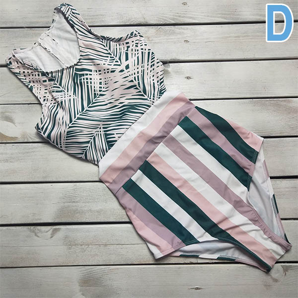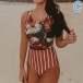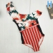 Sexy Backless High Waist Striped Spliced Printed One-piece Swimsuit