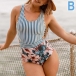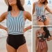 When you head to the seaside,your sexy and seductive curve can have a full display in this swimsuit. The striped spliced and printed details make this piece look so eye-catching,while the backless design can make it look sexier. For your beach days and tropical getaways,this one-piece swimsuit is a good choice.