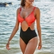 Sexy Backless Hollow Out Contrast Color One-piece Swimsuit