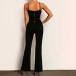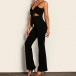 Sexy Backless Hollow Out High Waist Solid Color Sling Jumpsuit