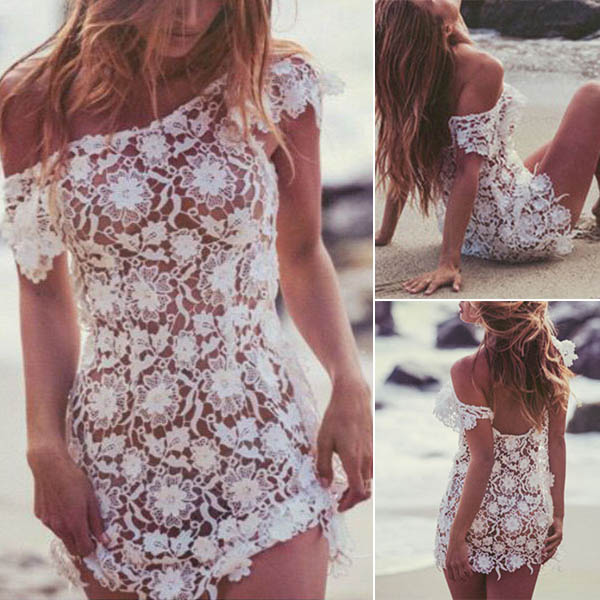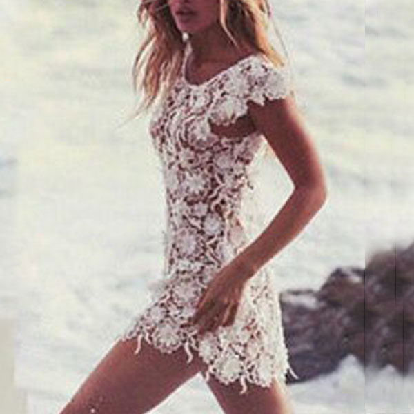 For a sexy and charming beach look,this lace smock can be a good helper. The backless and hollow out lace design make this piece full of flirty and feminine vibes. You would be a pleasant sight on the beach if you don this little piece.