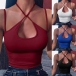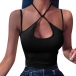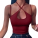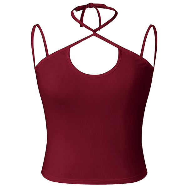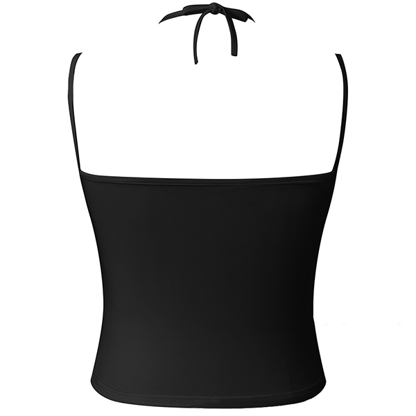 When you wanna expose your charming skin,you can just turn to this top for help. The backless,hollow out and unique halter design make this piece look so sexy and alluring. You can simply matching with a high waist shorts to have a sassy and flirty look.