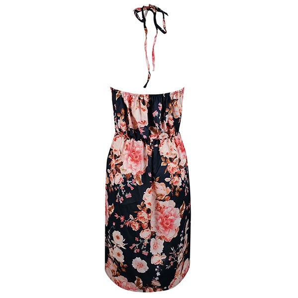 Thanks to the vibrant floral print,this dress can help you catch more eyes. Halter style,