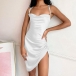 Sexy Backless Irregular Hem Solid Color SLing Wrinkled Dress