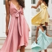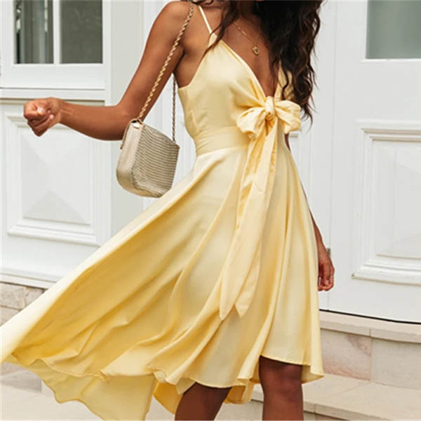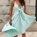 Sexy Backless Knotted V-neck Solid Color Sling Dress