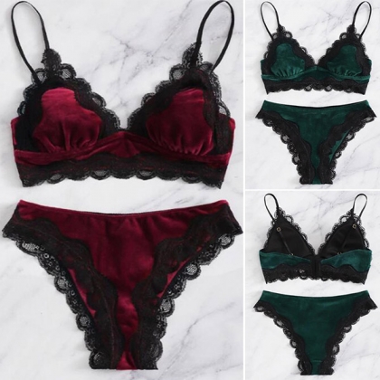 Sexy Backless Lace Spliced Bra + Briefs Underwear Set