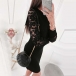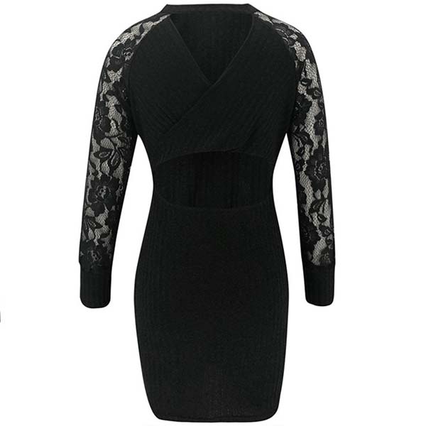 Seductive appeal comes easily once you slip into this little stunner. The flattering black tone and fit silhouette design can amplify your perfect figure,while the backless,hollow out and lace spliced details will make this piece look more alluring. Definitely,you can easily be the focus in this dress!
