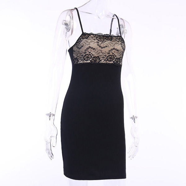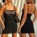 Sexy Backless Lace Spliced Slim Fit Sling Dress