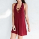 and gatherings. Its flirty details such as backless and lace-up deep v-neckline design make this piece