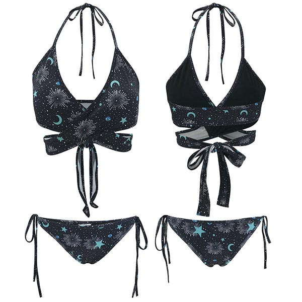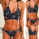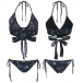 Sexy Backless Lace-up Printed Halter Bikini Set