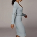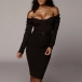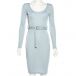 Sexy Backless Long Sleeve Round Neck Slim Fit Dress with Waistband