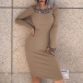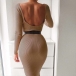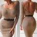 Sexy Backless Long Sleeve Round Neck Solid Color Slim Fit Dress