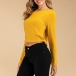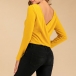 This knit top comes with a bright yellow tone,which can better highlight your fair skin. Short-style design,finished with long sleeve and backless,this piece also can exude your sexy and feminine side. We think matching with a high waist tight pants would offer you a charming dress up.