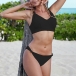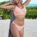 When the summer season hits,you can just head to the seaside to relax yourself. So we suggest you this bikini set. Solid color style,including a backless bikini top and a low-waist bikini bottom,this bikini set definitely can flaunt off your seductive curve.