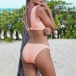 Sexy Backless Low-waist Solid Color Bikini Set