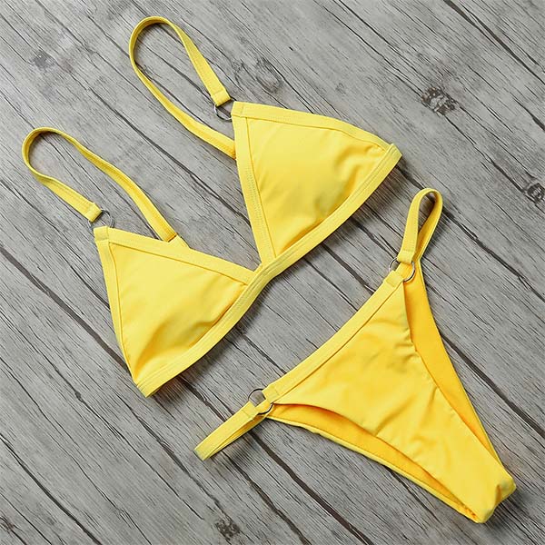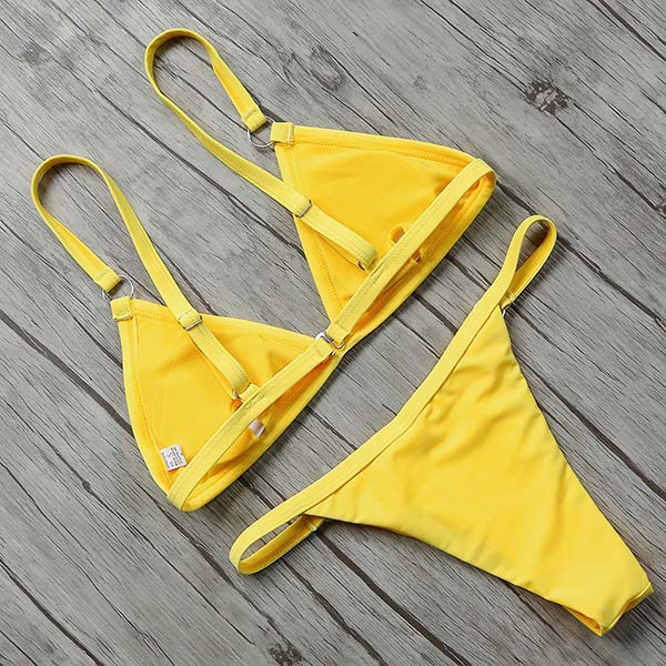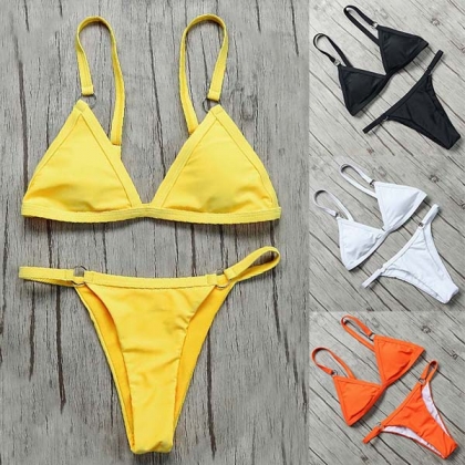 For your beach days and tropical getaways,you need such a simple,cozy yet sexy bikini set to accompany you! Solid color style,including a backless bikini top and a low-waist bikini bottom,this bikini set can give you a long-lasting comfort as well as showcase your seductive curve.