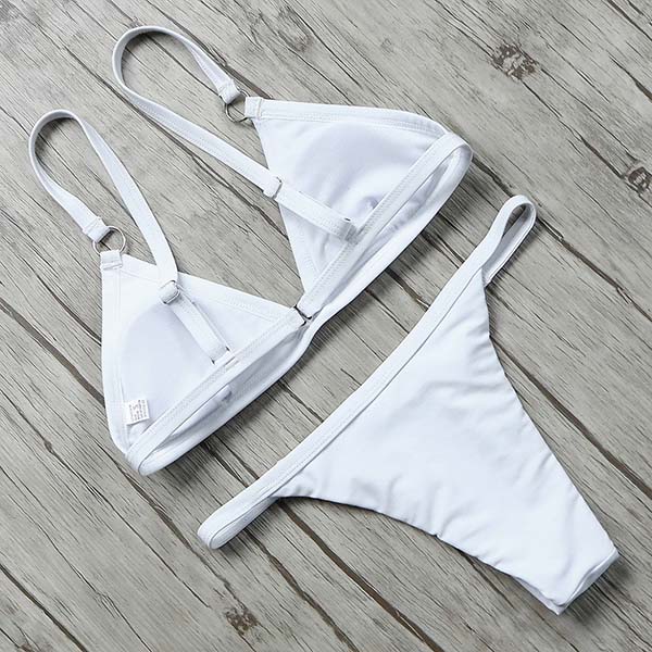 Sexy Backless Low-waist Solid Color Bikini Set