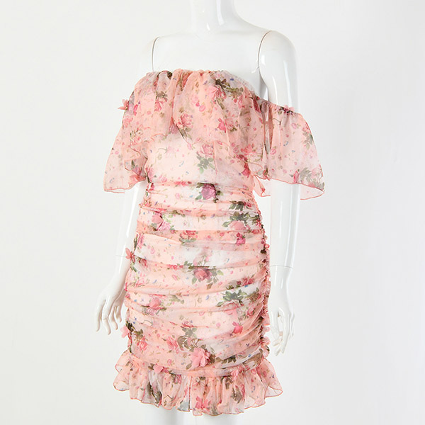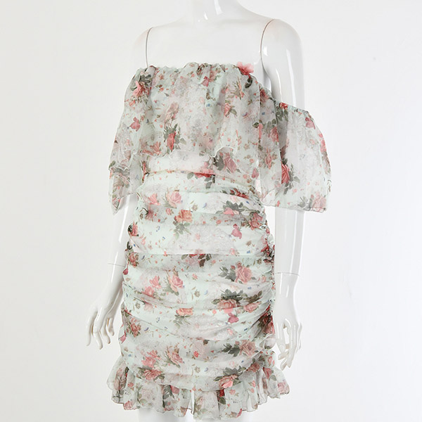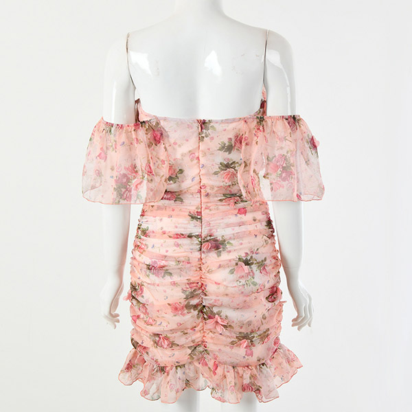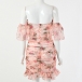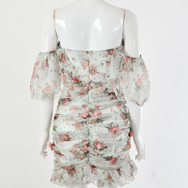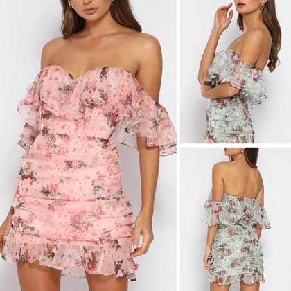Sexy Backless Off-shoulder Ruffle Printed Dress