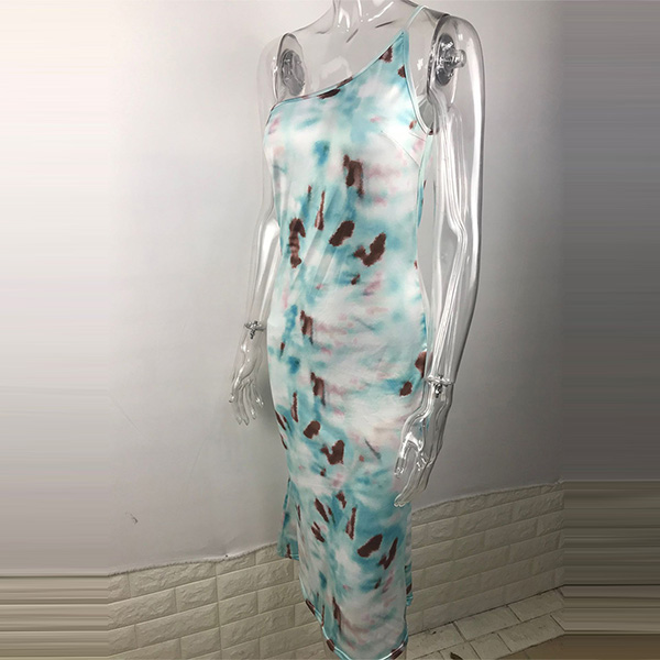 Sexy Backless One-shoulder Tie-dye Printed Sling Dress