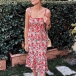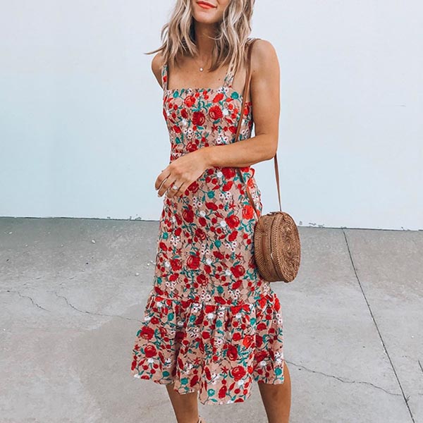 Every girl can look effortlessly charming and beautiful in this dress. Its vibrant floral print details make this piece look so eye-catching. Sling style,with backless and ruffle hem design,sweet yet feminine. You can trust in this piece to give you a wonderful summer.