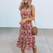 Sexy Backless Ruffle Hem Printed Sling Dress