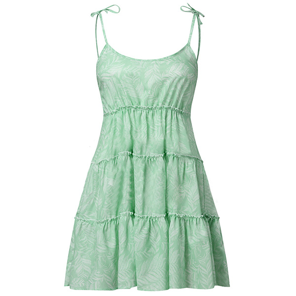 Sexy Backless Ruffle Hem Printed Sling Dress