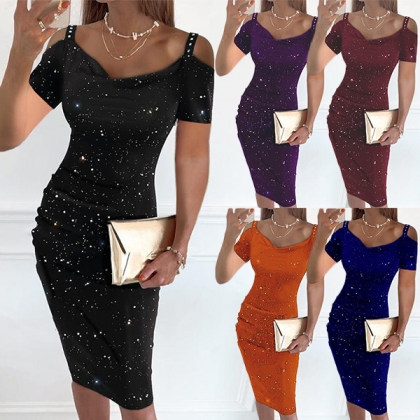 Sexig rygglös paljettskarvad Slingklänning för smal passform (storleken är liten)
