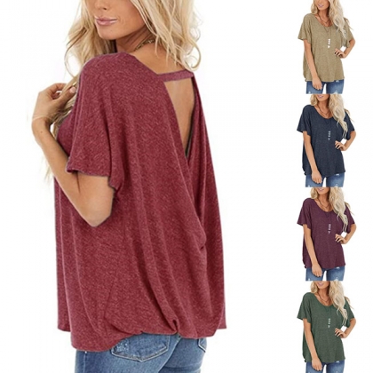 Sexy Backless Short Sleeve Round Neck Loose T-shirt
