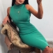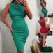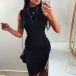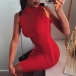 Sexy Backless Sleeveless Mock Neck Solid Color Slim Fit Dress(It runs small)