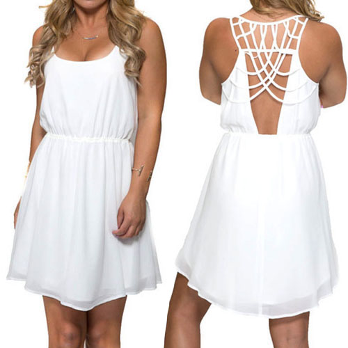 round neck,backless and an elastic waist,this dress can give you a cool summer.