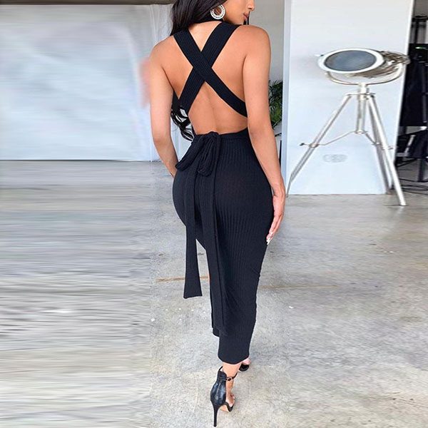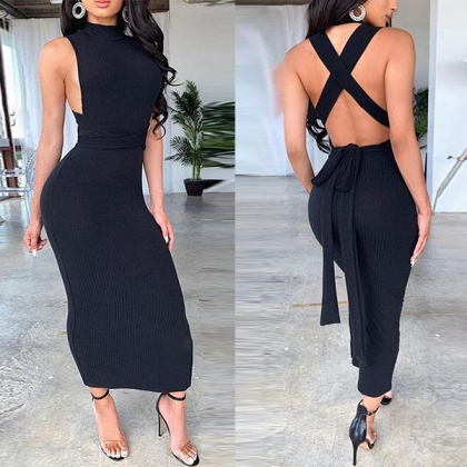 Sexy Backless Sleeveless Solid Color Slim Fit Dress