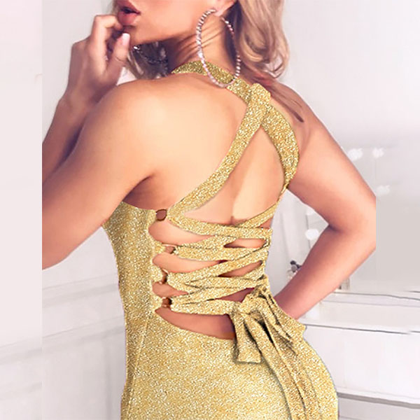 Looking for a proper dress for the parties and gatherings? Then this shining dress would be a perfect solution. Sling style,with backless,lace-up details and a fit silhouette,this dress not only can make you look alluring,but also can demonstrate your slender figure. You can easily arouse a splash in this little stunner.