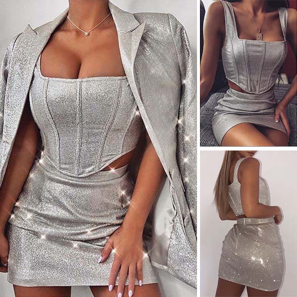 You can have a sexy and flirty weekend look when you dress yourself up with this two-piece set. Including a backless sling crop top and a high waist skirt,this two-piece set not only can flaunt off your seductive curve,but also can exude your feminine and flirty side. You can easily be the focus in this two-piece set.