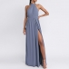 Sexy Backless Slit Hem Solid Color High Waist Halter Dress