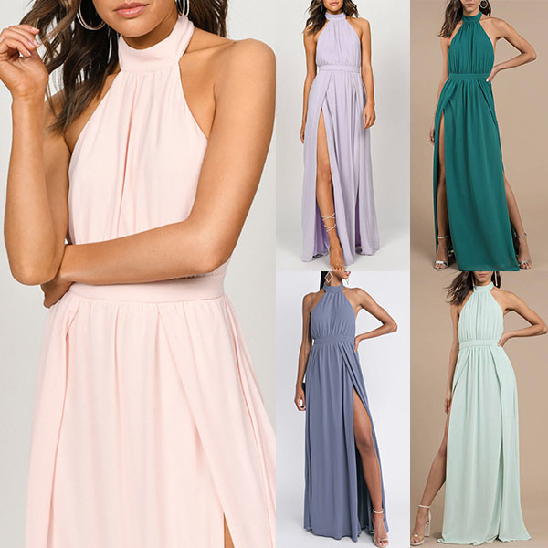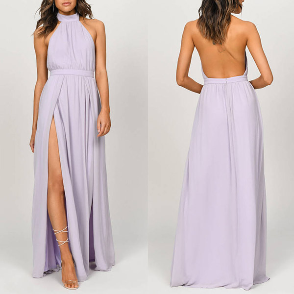 Seductive appeal can come easily once you slip into this stunning dress. Halter style,with backless and slit hem design,which make it look so sexy and alluring,while the high waist and maxi length design will demonstrate your slender figure. You can easily be the focus when you wear this piece.