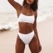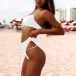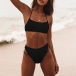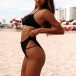 For your beach days,this cozy yet sexy bikini set can be your wise choice. Solid color style,including a halter bikini top and a low-waist bikini bottom,its soft,breathable fabric can give you a long-lasting comfort. You can add a body chain if you wanna look more charming.